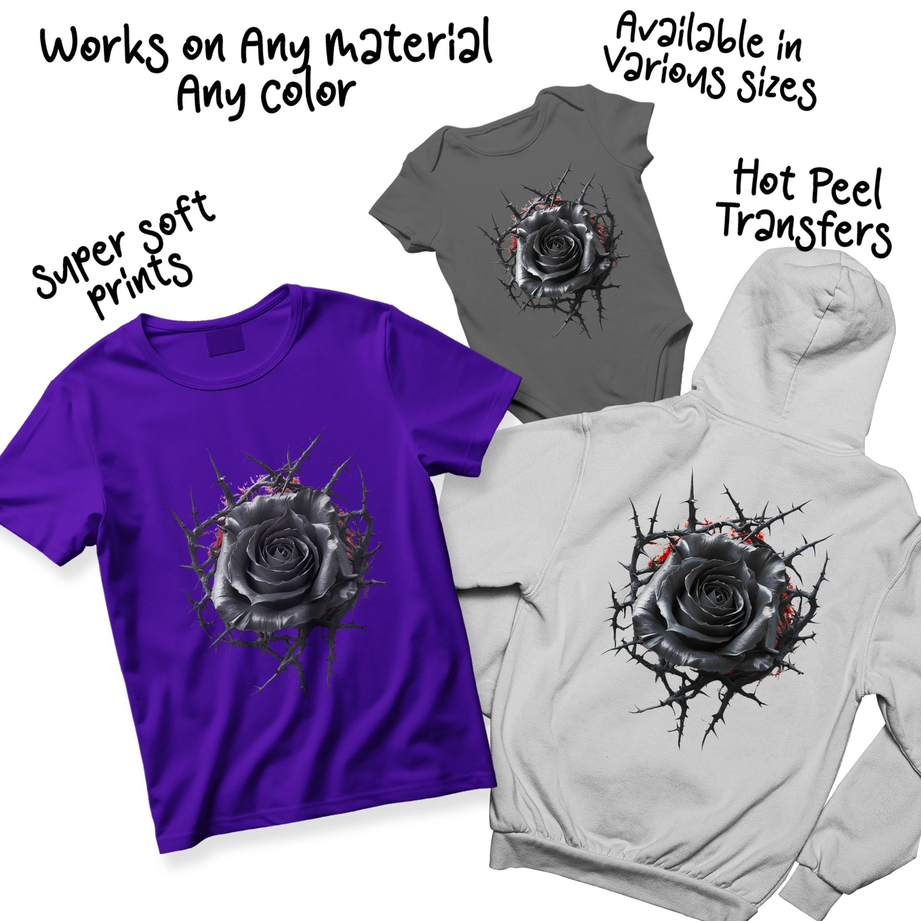 Valentine DTF Transfer - Gothic Black Rose Thorns Ready To Press