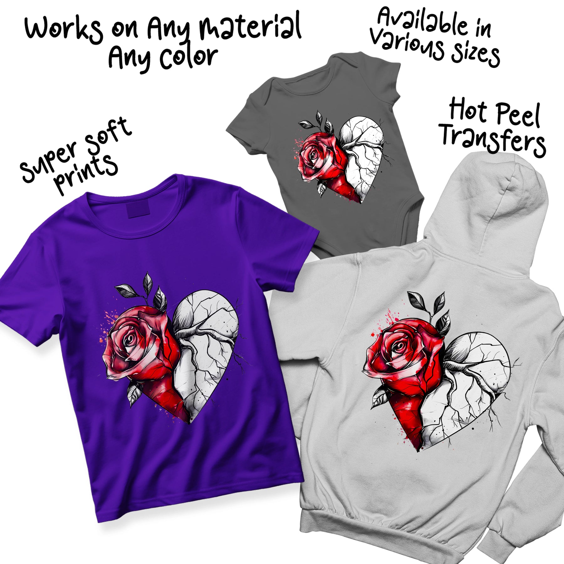 Rose Cracked Heart Valentine DTF Transfer Ready To Press