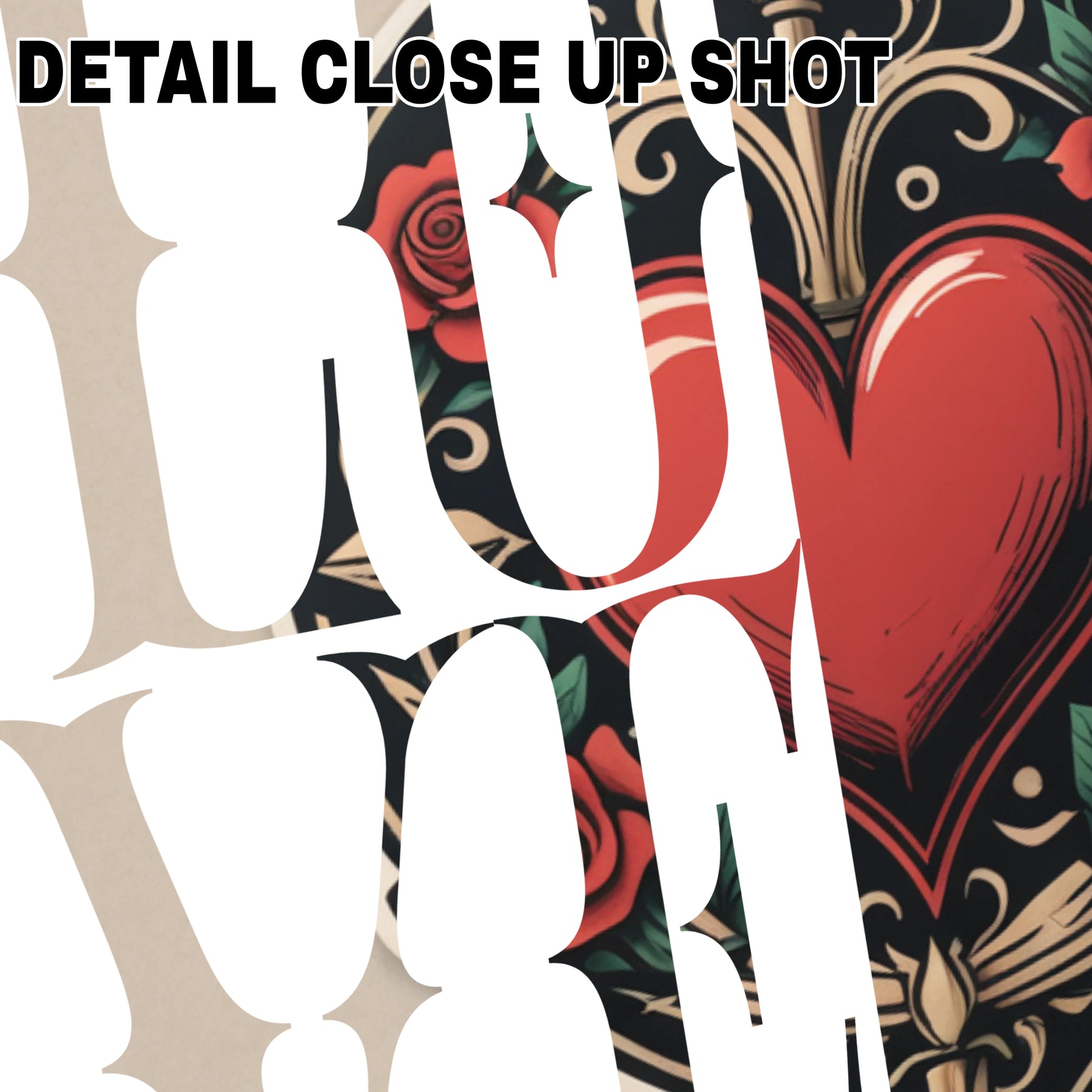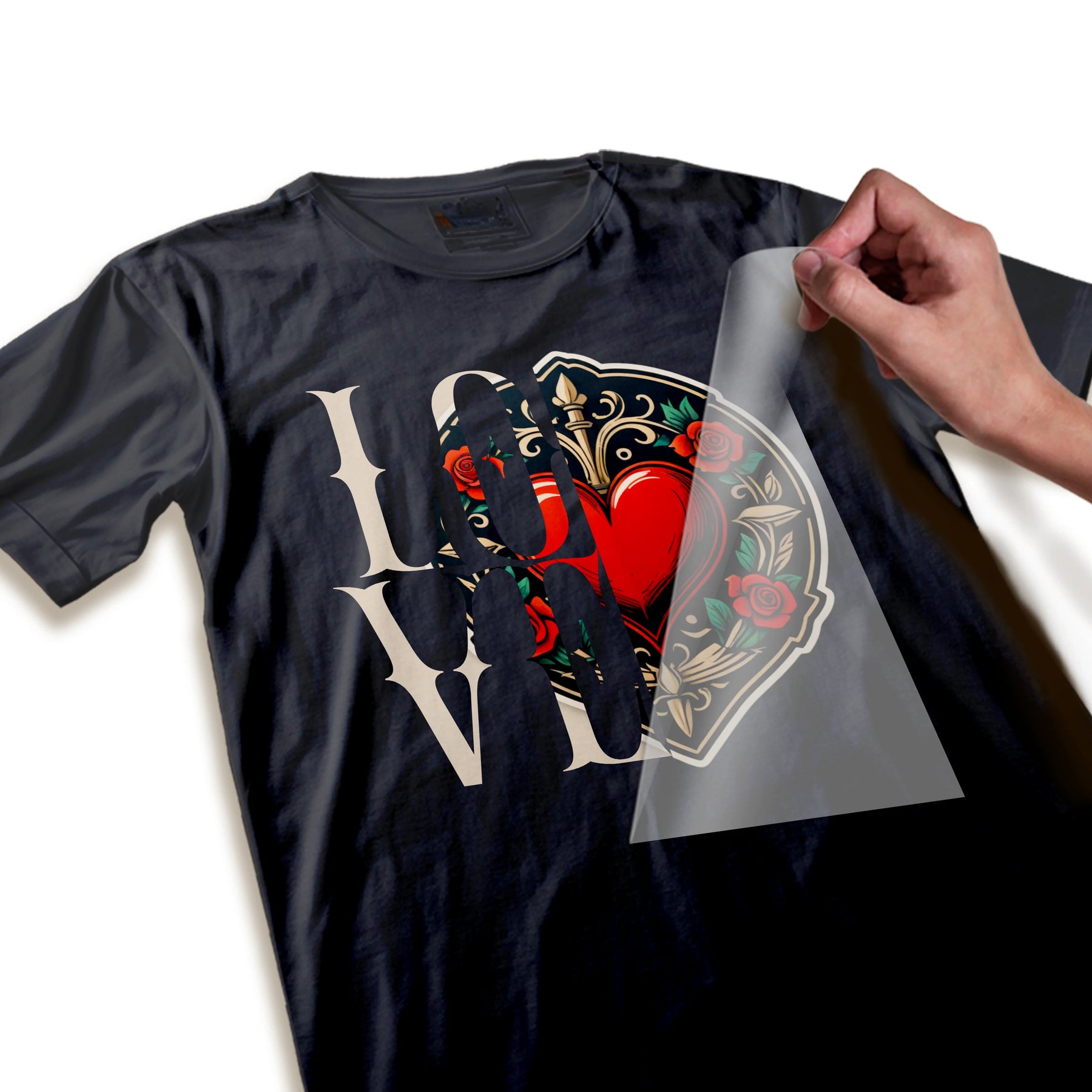 Valentine DTF Transfer - Tattoo Heart Rose Design Ready To Press