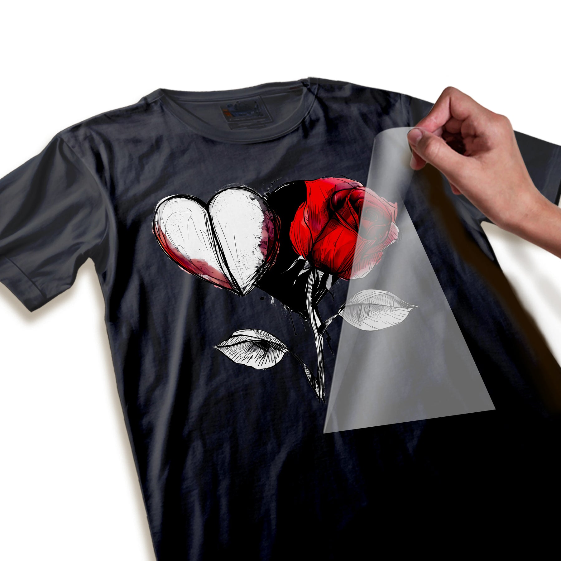 Valentine DTF Transfer Ready To Press - White Heart Red Rose