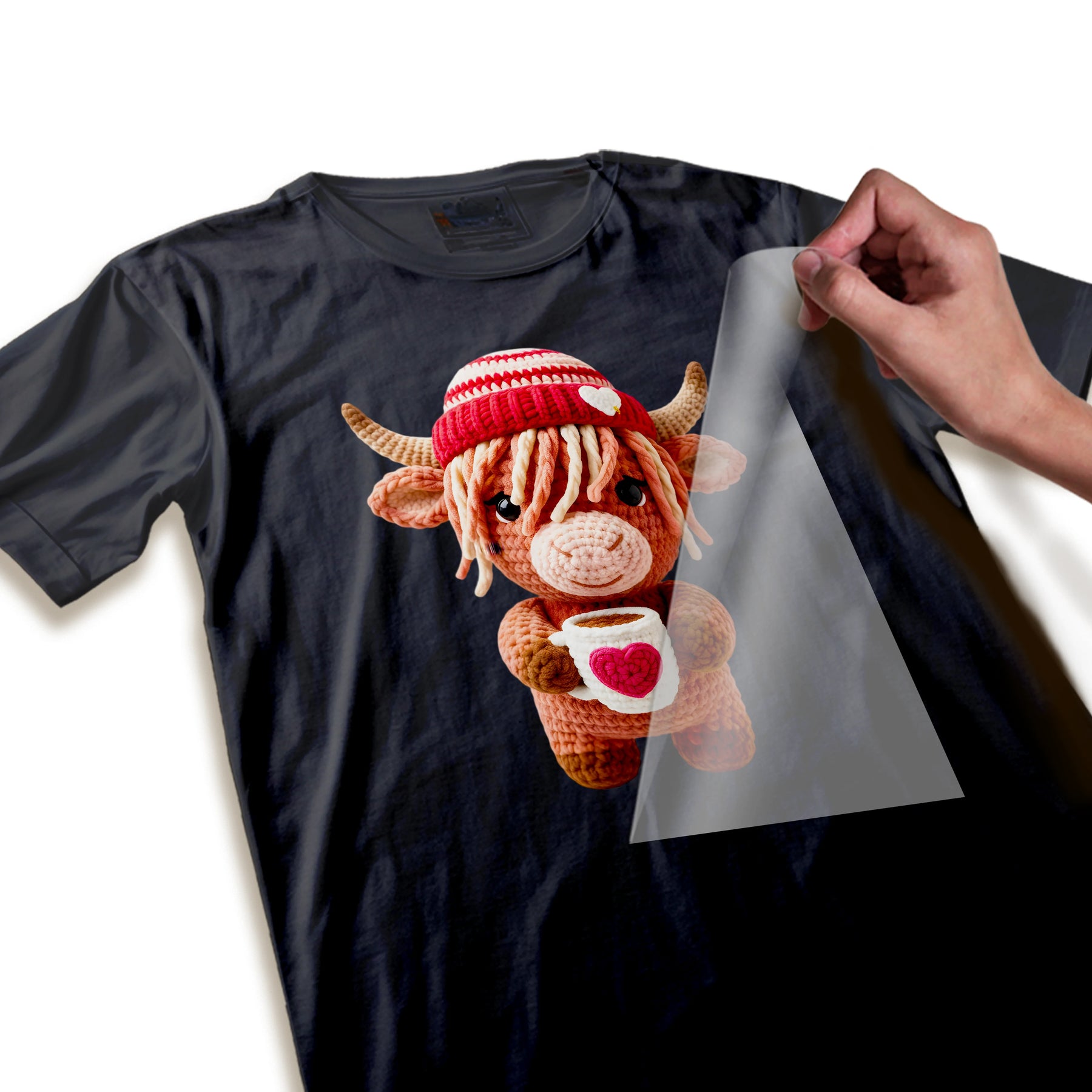Valentine DTF Transfer - Highland Cow Crochet Beanie Ready To Press