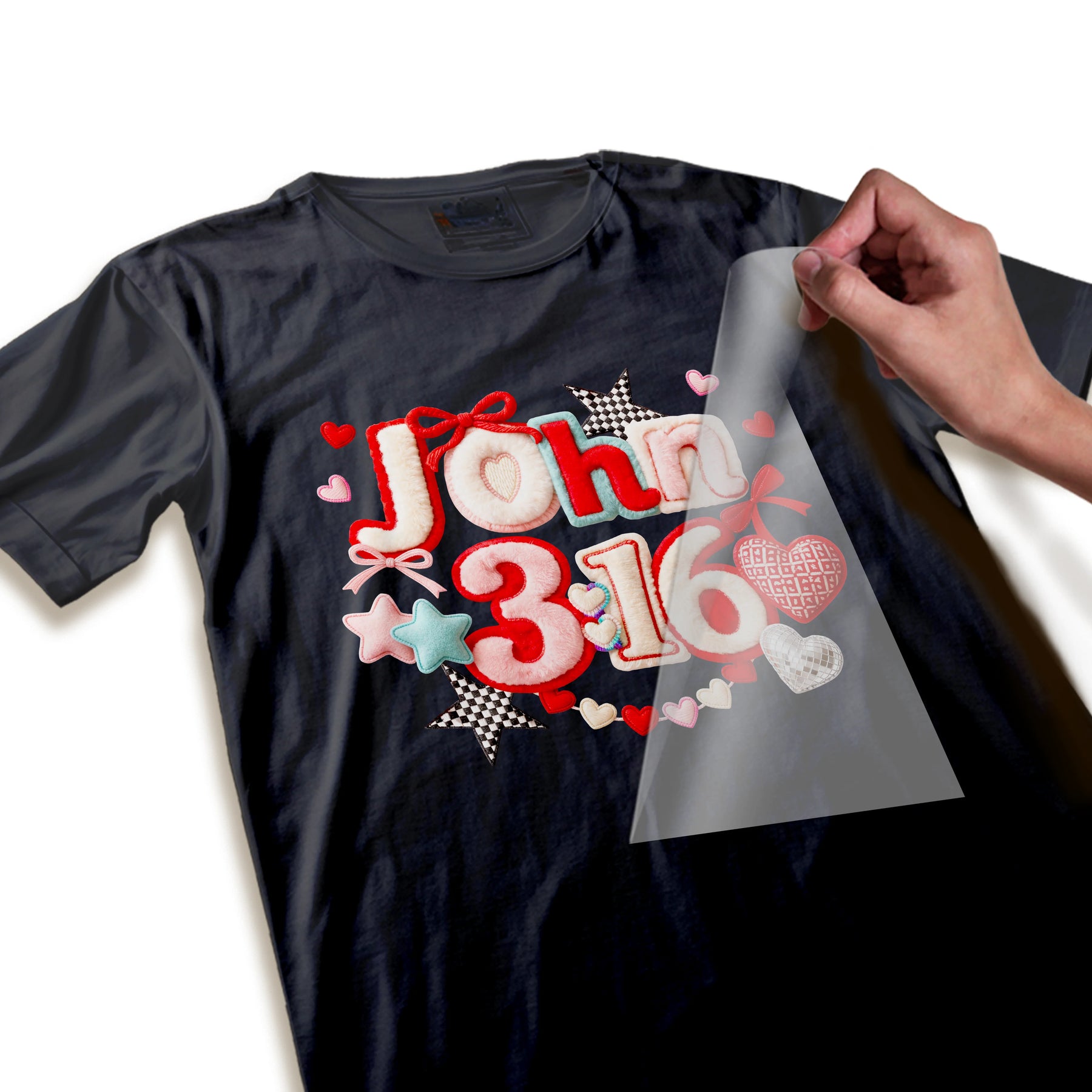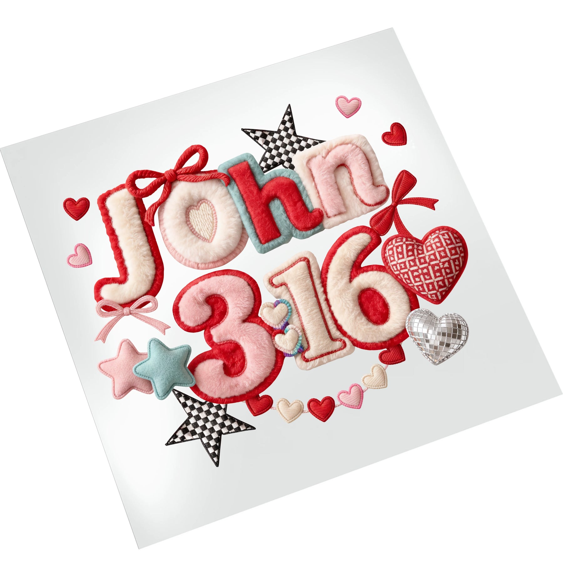 Valentines Faith DTF Transfer - John 3 16 Hearts Stars Ready To Press