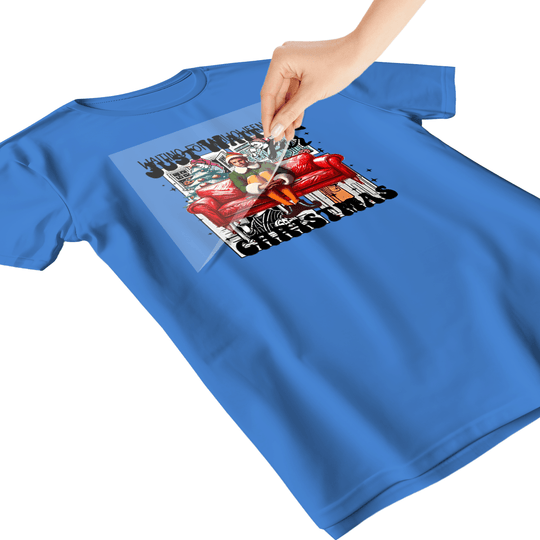 - PLACE – Position your DTF transfer on the garment with the design side DOWN (colored side touching fabric).