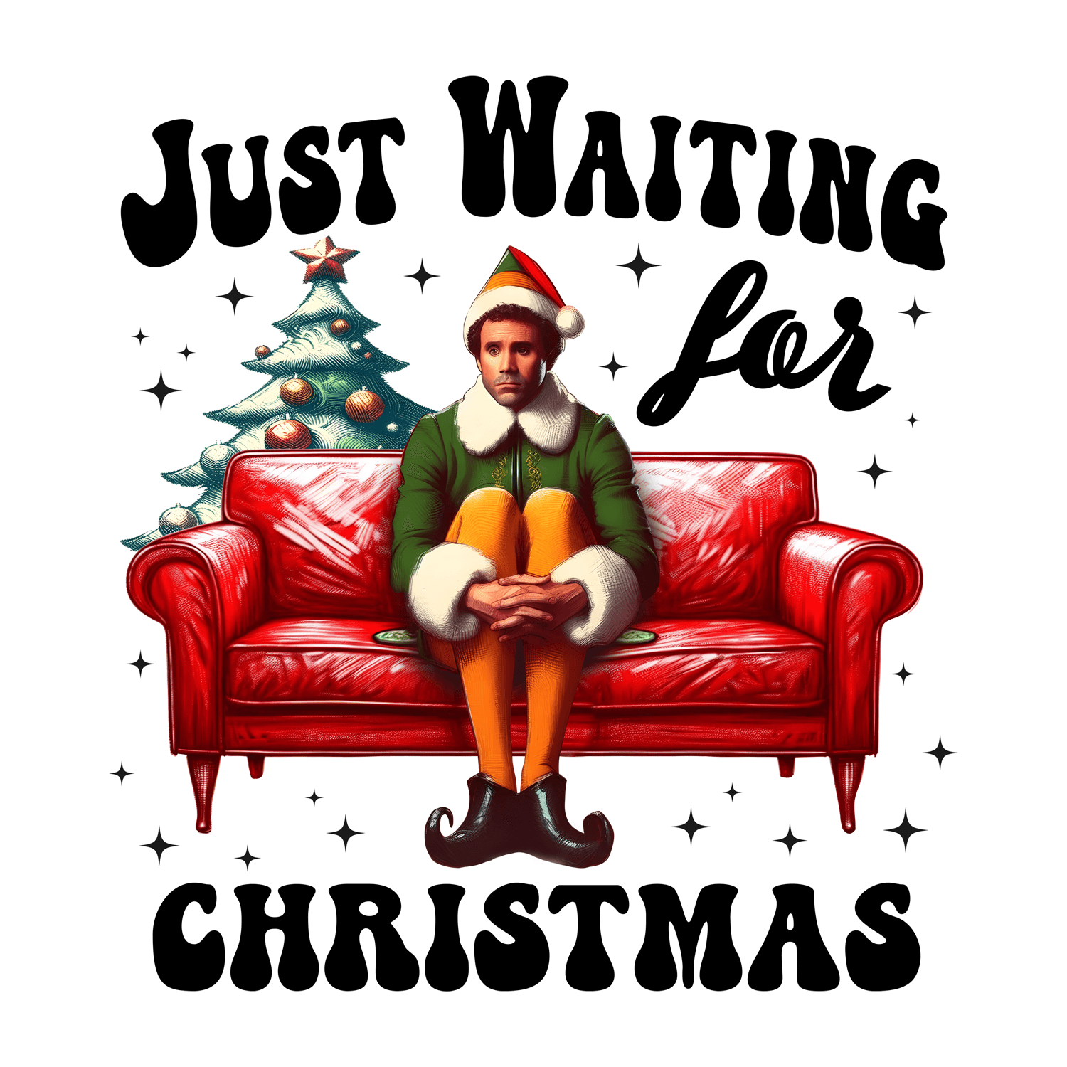 Waiting For Christmas - Just Waiting For Christmas 3 - Buddy The Elf - DTF Transfer - Direct-to-Film
